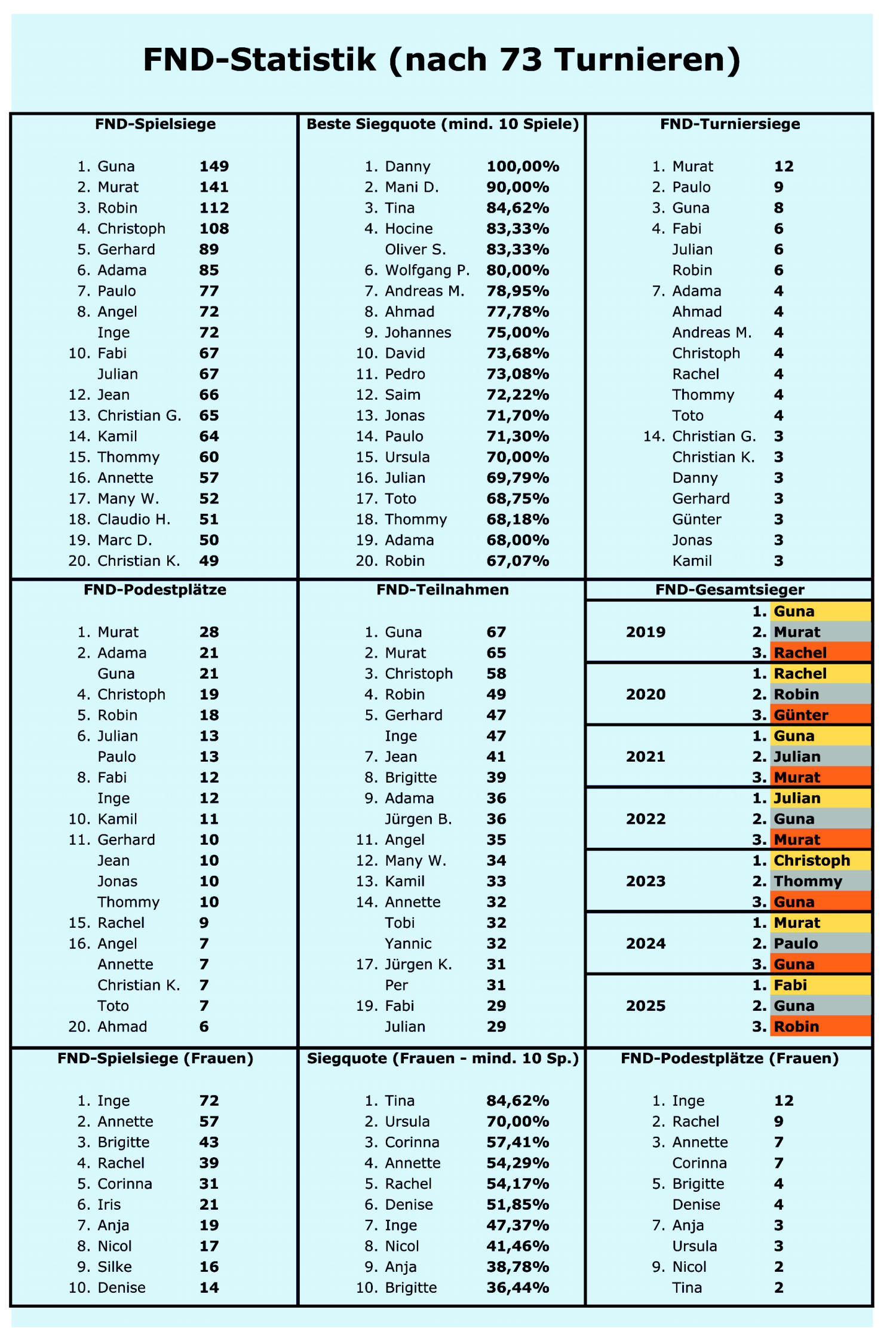 Dank an die insgesamt 96 verschiedenen Teilnehmer/innen der FND-Saison 2025 für